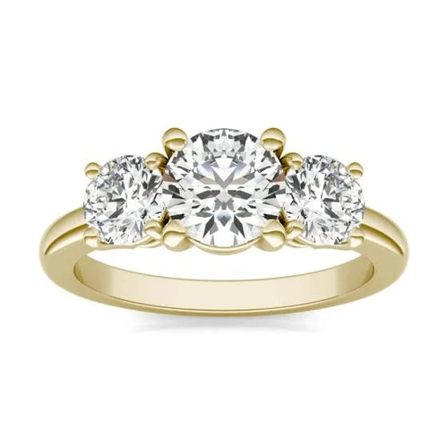 2 CTW AGI Certified Lab Grown Diamond (G-VS) Three Stone Engagement Ring in Choice of 14K Yellow or 14k White Gold